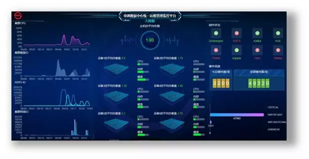 在上海申通地铁的展台上,上海玖道信息科技股份有限公司设计和开发的“申通数据中心统一运维管理大数据监控平台”,以具有科技感、未来感的设计,配以后台地铁大数据运维的实时动态数据,成为一大亮点。围绕着大数据平台的配置、性能、状态、告警等维度,对大数据集群进行展示。是申通数据中心大数据集群的实时动态“体检表”。