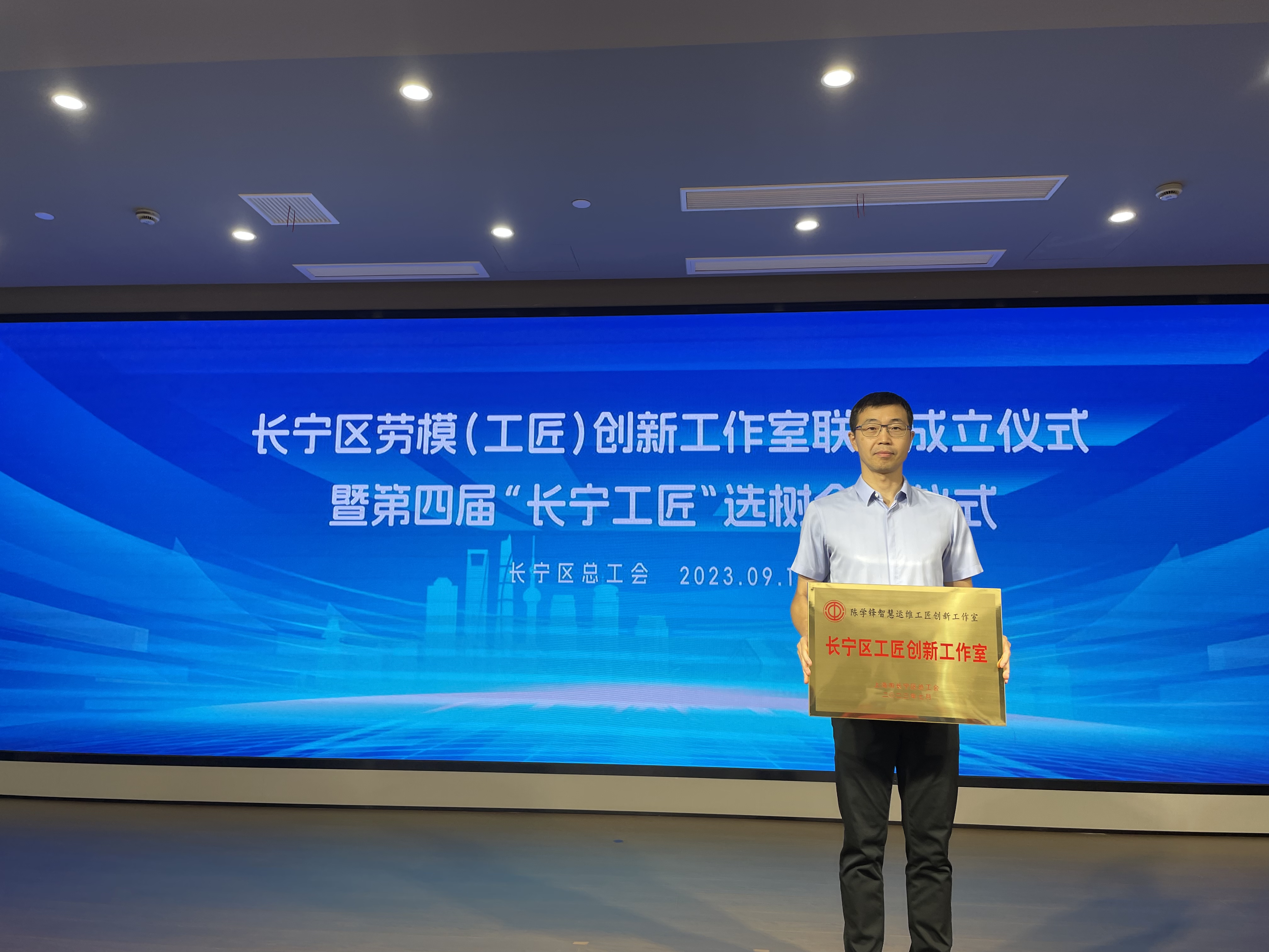 9月15日,长宁区劳模(工匠)创新工作室联盟成立仪式暨第四届“长宁工匠”选树命名仪式在长宁区工人文化宫正式举行。玖道科技副总经理、第三届“长宁工匠”获得者陈学锋代表公司出席仪式。会上,长宁区总工会为玖道科技陈学锋智慧运维工匠创新工作室授牌。